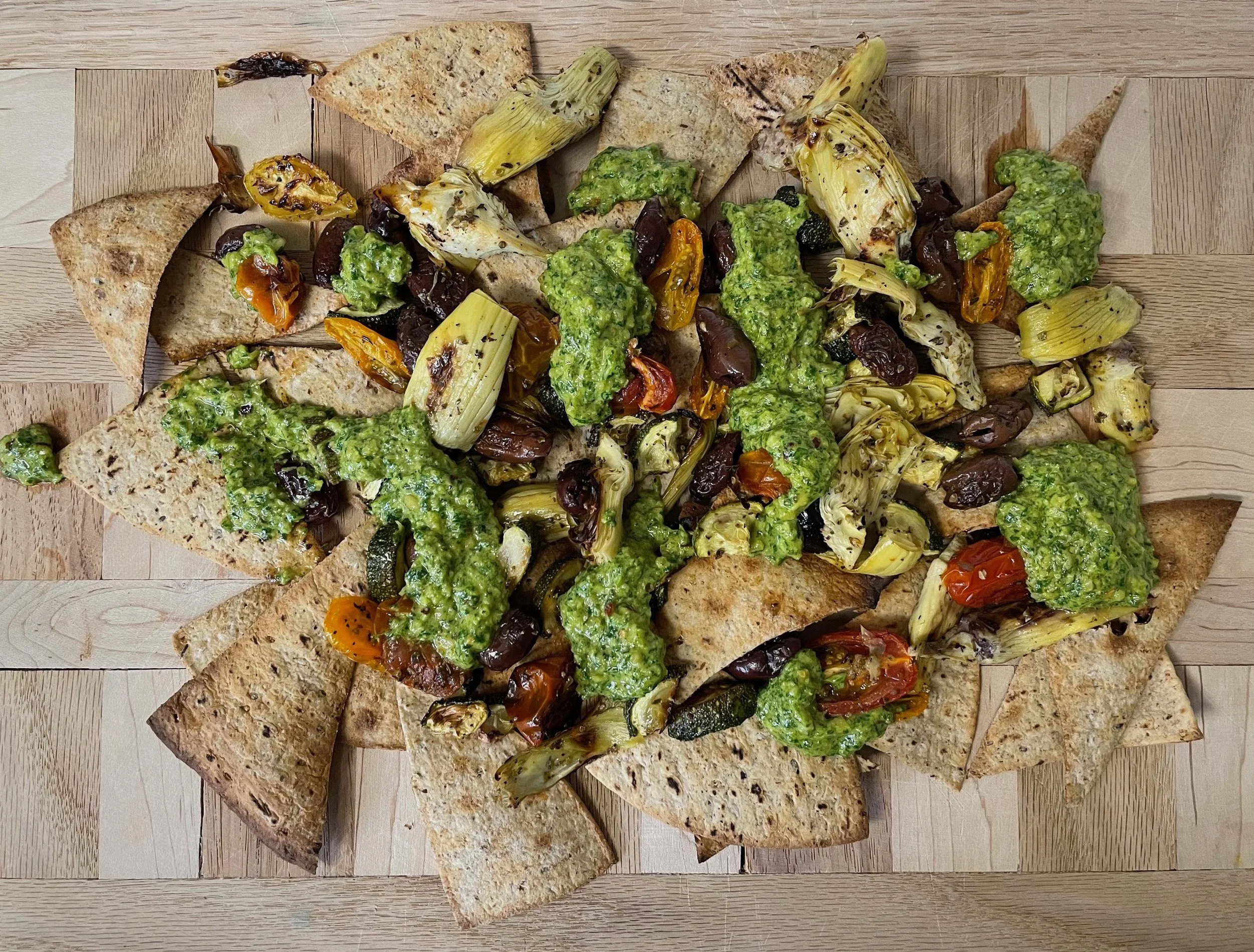 Mediterranean Veggie Nachos: Healthy Party Appetizer with 6+ Plant Points